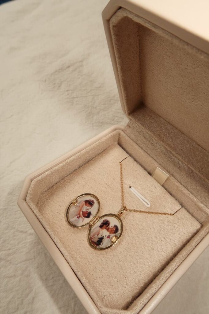 Among the most touching items the brand creates are its lockets, each containing a photo chosen by the client. These tiny treasures hold immense emotional weight—every photo tells a unique story, whether of a lost loved one, a new baby, or a cherished memory. Engravings, handprints, signatures, and personal logos add another layer of sentiment, carefully incorporated without compromising the beauty and wearability of each piece.